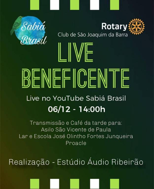 Em meio às recomendações de distanciamento social devido à pandemia do Corona Vírus, o Rotary Club São Joaquim da Barra promoveu na tarde de 06 de dezembro, a realização de uma live beneficente.