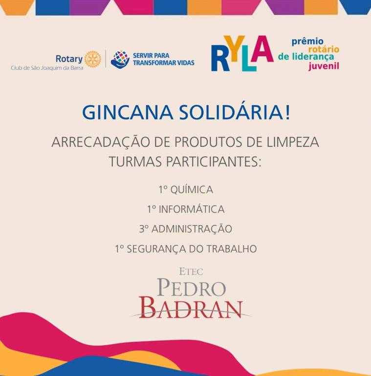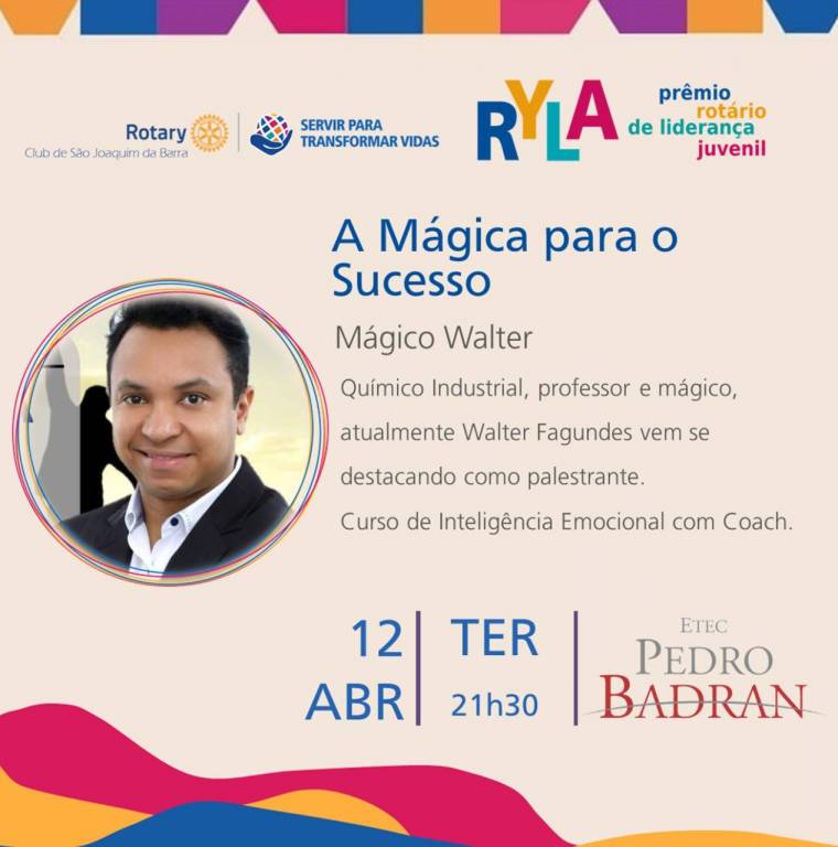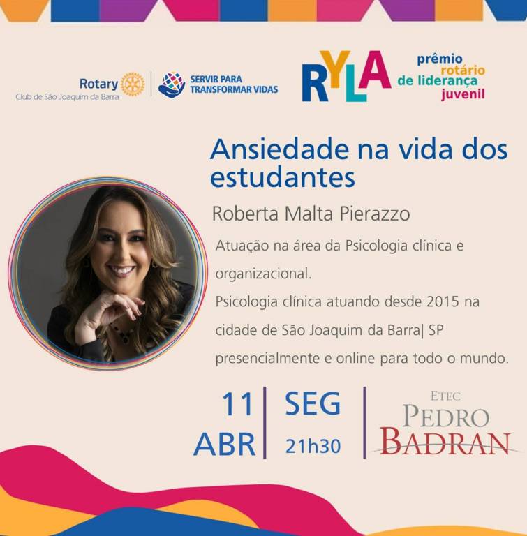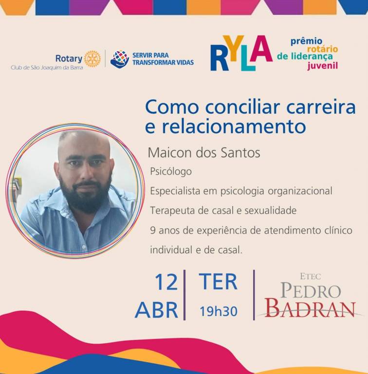 Rotário de Liderança Juvenil, nos dias 11 e 12 de abril, na Etec Pedro Badran.