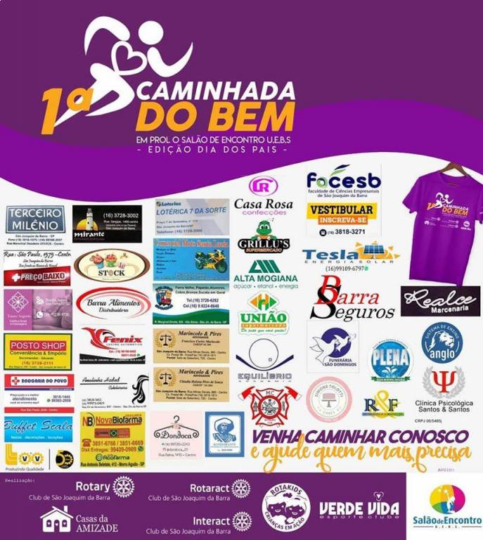 Na manhã de 11 de agosto, o Rotary Club de São Joaquim da Barra e Família Rotária uniu forças para a realização da 1ª Caminhada do Bem, em prol ao Salão de Encontro União Espírita Bittencourt Sampaio, entidade que cuida de crianças carentes e abriga peregrinos em passagem pela cidade!